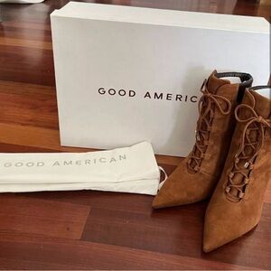 Brown stilletto boots. Good American Suede tobacco boots.Size 9. GA012K-X