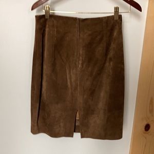 Brown Suede skirt. A line skirt with beautiful detail on bottom front. Size 8.