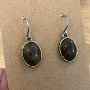 Brown tiger’s eye oval cabachon drop dangle earrings on goldtone