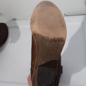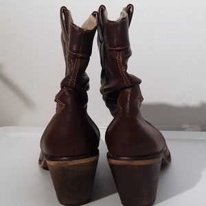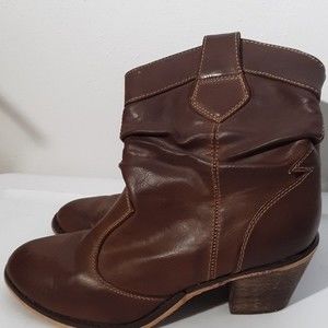 Brown used Decree VEGAN leather slouched ankle boots 7.5