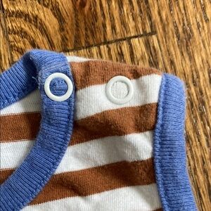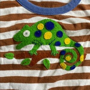 Cute brown/white stripe Baby Luigi lizard appliqué bubble. Great condition, one pull/small rip on middle crotch snap, see picture. Ships quickly from smoke free/pet friendly home.