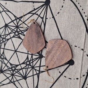 Brown wood earrings diamond abstract geometric shape boho jewelry