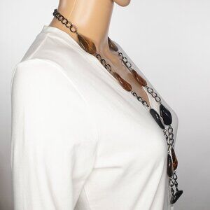 Brown/Amber Black And Spotted Large Beads On A Dark Chain Necklace