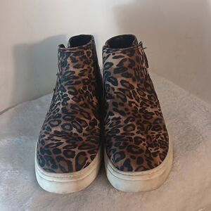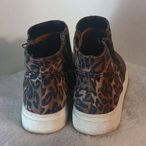 Brown Animal Print High-Top Sneakers with Zip Closure