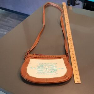 Brown Cream and Turquoise Purse with Adjustable Strap