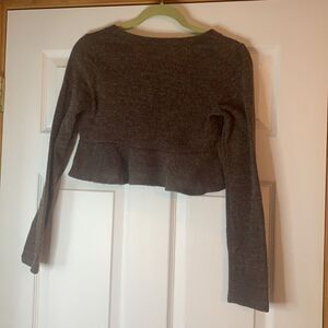 Brown Crop Button Down Ruffle Sweater Coverup Medium