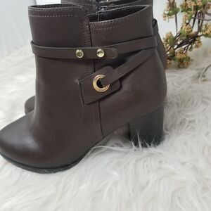 Brown Faux Leather LIZ CLAIBORNE ANKLE BOOTS.