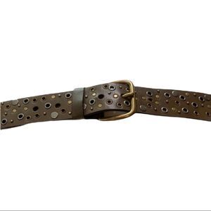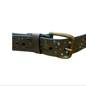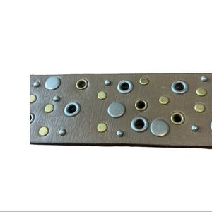 Brown Genuine Bonded Leather Belt with Metal Decor Approximate length 42 inches. Size large