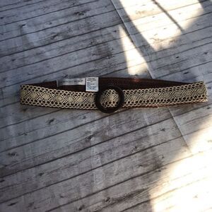 Dress up a down outfit! Brown 100 %Cotton lace overlay adjustable belt. Round buckle- pull to tighten. Size S/M. 37” long. 1 1/2” wide. Made in India