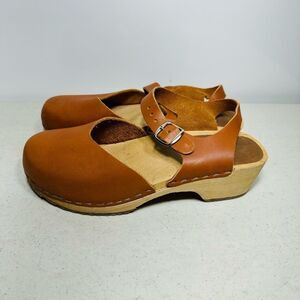 Stylish and comfortable brown leather clogs Perfect for everyday wear.