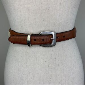 Brown Leather and Western Fabric Belt w/Silver