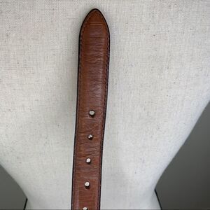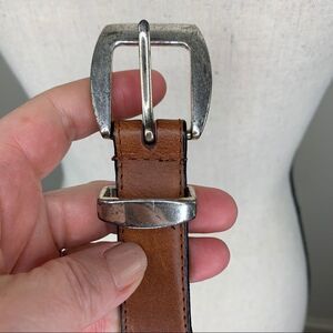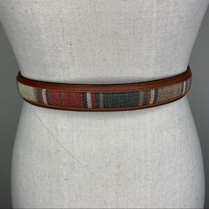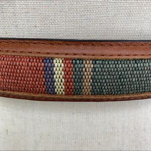 Men’s Brown Leather and Colorful Fabric Western Style Belt Sz 44 w/Silver tone Buckle. some wear to leather around buckle holes, but otherwise in great used condition. 1” wide. Buckle slightly distressed. Please see photos for additional details.