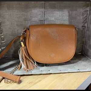 Brown Pleather Crossbody With Tassle and Gold Detail