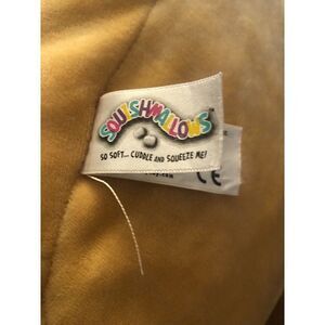 Cute 12" brown pug Squishmallow. Brown pug with white tummy, black eyes, nose and ears. Red and purple hearts and "Love" embroidered at bottom left side. Squishmallow is in good used condition, no stains or damaged fabric, some wear shown on the tags at the bottom (shown in pictures).