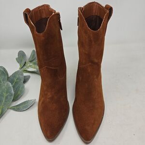 Step out in style with these chic brown suede pointed toe ankle boots. Perfect for any occasion, they offer both comfort and elegance. They are the Wayde style in a women's size 8.
