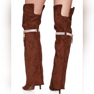 Brown Suede Over-the-Knee Boots with Lock Detail Sz 6.5