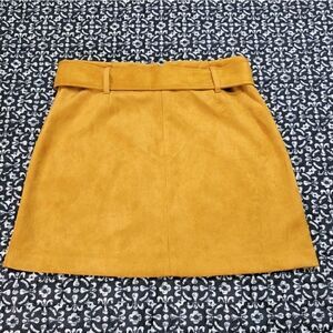 Brown Suede Belted Mini Skirt. NWT. Stretchy and soft material.