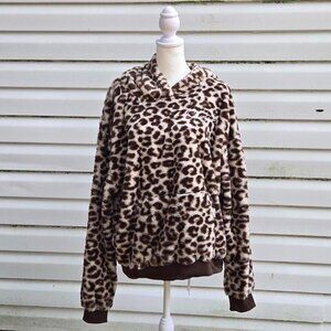 Brown/Tan Faux Fur Leopard Print Hoodie