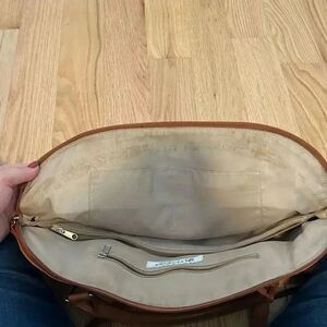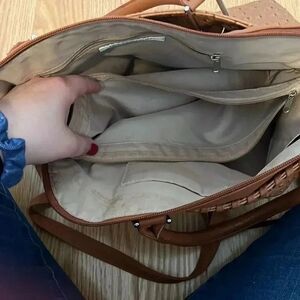 11in tall 17in across 6 in deep this Versona person comes with a cross body shop as another way to where the bag gently used. the only signs of wear on the inside but is still at a very great summer purse to have in your closet