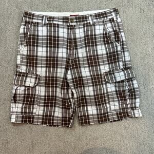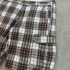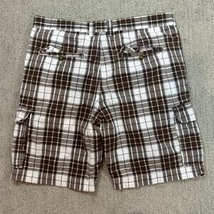 Brown/White Y2K Surf Style Plaid Cargo Shorts