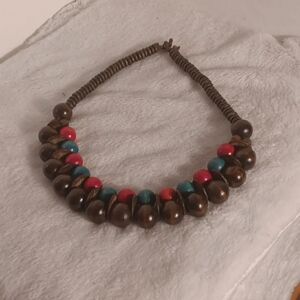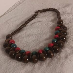 Add a touch of elegance with this brown and multicolor beaded necklace. Perfect for any occasion.