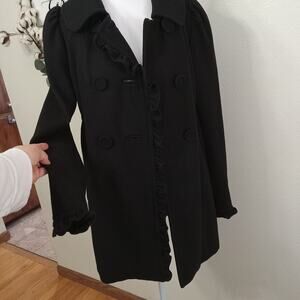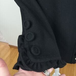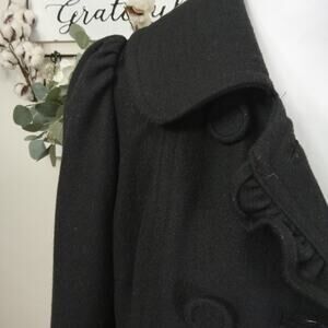 Brownie NY Peacoat Sz Sm Black Wool Blend Buttons Ruffles Preppy Formal Dressy