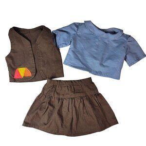 Unbranded 18" Doll Clothes Brown Blue Brownie Scout Outfit 3 Pieces Top Skirt Vest Hook Loop Close.