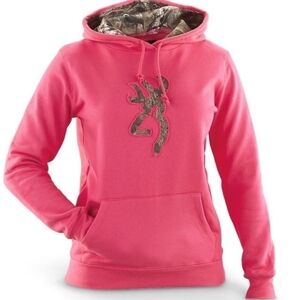 Browning Bright Pink Pullover Camo Hoodie Drawstring neck. Medium