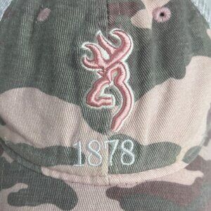 Browning Camo Trucker Hat Mesh Back Pink Gray Embroidered Logo Adjustable