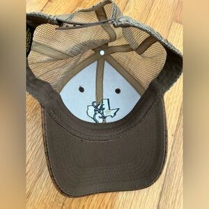 Brown cap with Texas and deer logo. Mesh back for breathability.