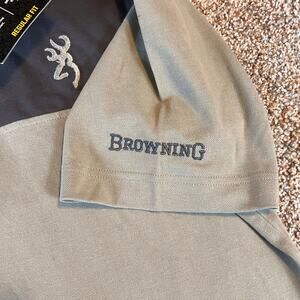 Browning Match Lock Polo Shirt. Dark Gray/Green. Snap Button and Stand up Snap Collar. Sun Protection. Cotton/Poly Blend. NWT Men's Size Medium