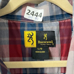 Browning Mens Red Blue Western Plaid Button Down Long Sleeve Shirt Large Pockets