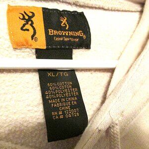 This Browning women's Hoodie Sweatshirt is a Pullover style, long sleeves, hooded drawstring neck, kangaroo pockets and front graphic. It has been worn and laundered only once and is in like new condition with no stains or damage of any kind. From a smoke free home.