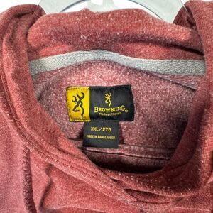 Keywords: browning, hoodie, pullover, sweatshirt, burgundy, hunting gear, outdoor wear, mens clothing, casual wear, athletic wear, sportswear, winter clothing