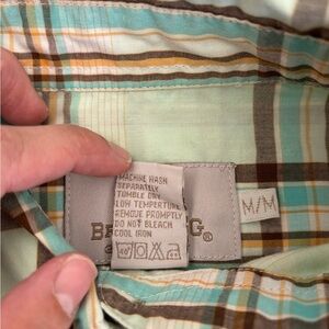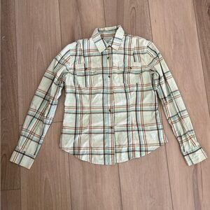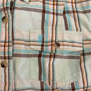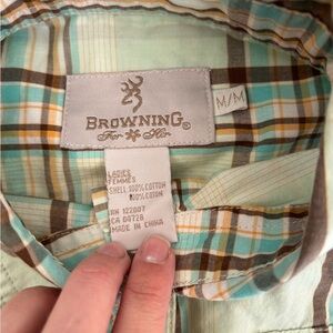 Browning Womens Med Flannel Button Up Blue Plaid Long Sleeve Flap Pockets Shirt