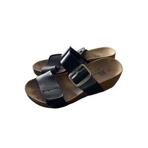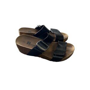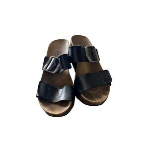 Browns Womens Black Leather Strap Comfort Wedge Sandals Size 6