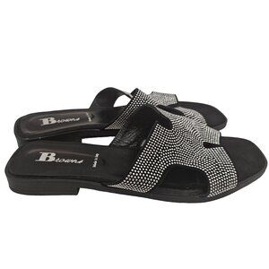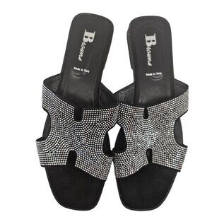 Browns Women's Rhinestone Embellished Slip-On Sandals Size 41 Made In Italy