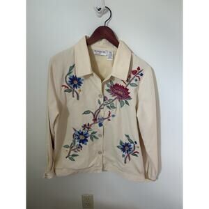 Brownstone Studio Jacket Womens L Button Front Embroidered Floral Beads Shacket