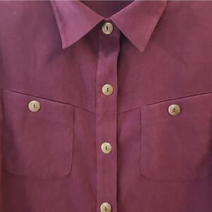 Brownstone Studio maroon colored button down shirt in a size XL. Fabric has stretch to it and a suede like feel to it. Excellent condition.
