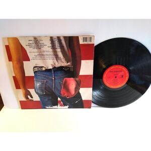 The product is a Bruce Springsteen "Born In The USA" vinyl LP record from 1984, featuring classic rock and pop rock music. It is a first pressing on Columbia Records with a 12" black vinyl record at 33 RPM. The LP comes in a cardboard sleeve with an original inner sleeve and cover. This collectible item is a great gift for Christmas or a birthday for any music enthusiast.