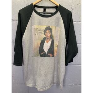 Y2K era Bruce Springsteen "Darkness on the Edge of Town" gray and black Raglan T-shirt.