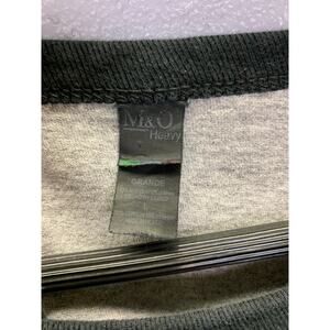 Gray M&O Heavy poly/cotton blend t-shirt with black Raglan sleeves and black rib knit crew neck.