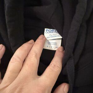 Pullover style hooded sweatshirt in excellent preowned condition. No holes, stains, pilling, etc. Size adult small.