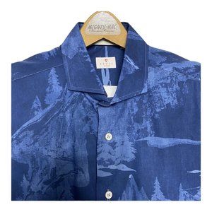 Bruli Blue w/ Scenic Outdoor Allover Print Long Sleeve Cotton Button Up 42/16.5