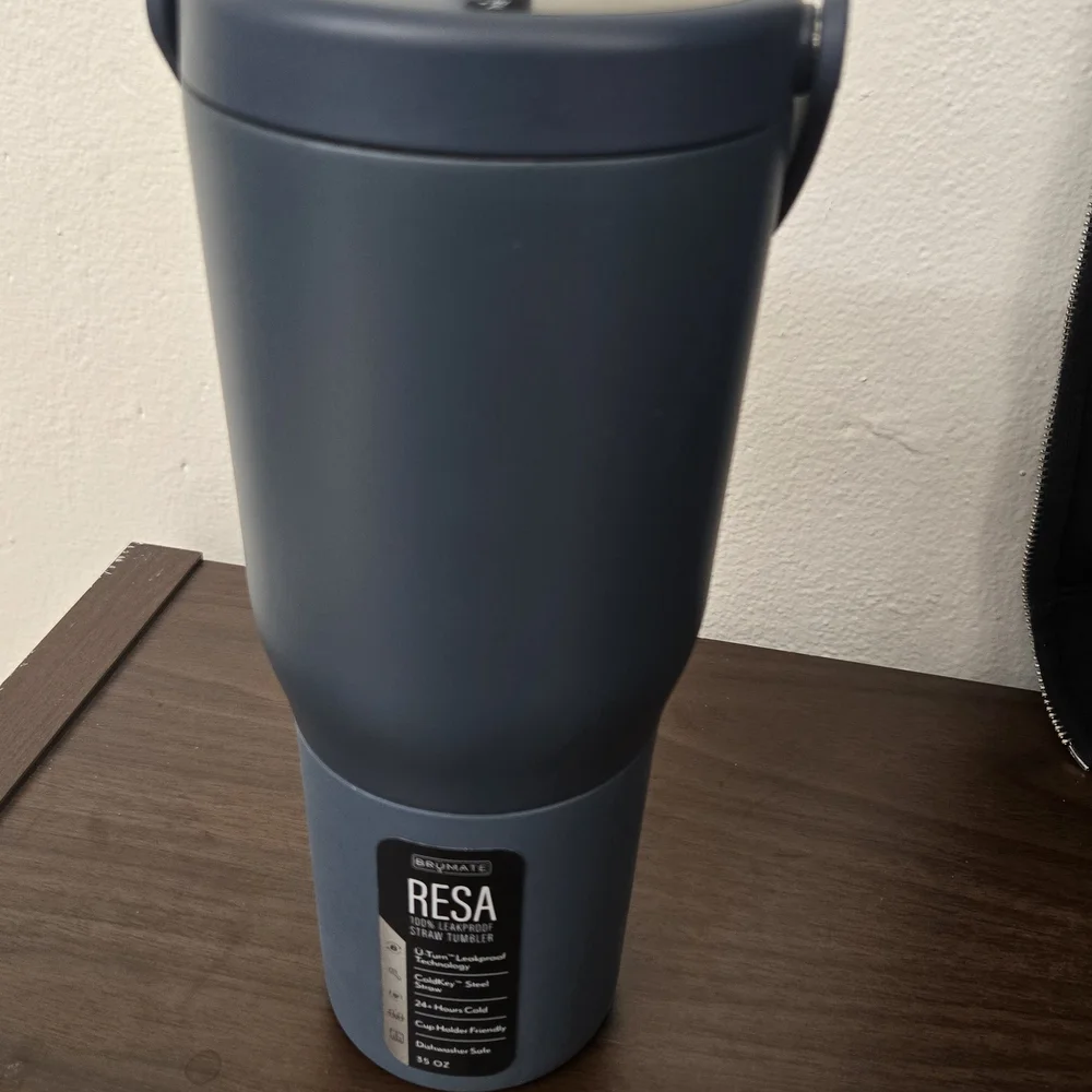 New brumate Resa 35oz NightFall Blue. 100% Leakproff straw tumbler, U-turn leakproof technology, coldkey steel straw,24+ hours cold, cup holder friendly, and dishwasher safe.