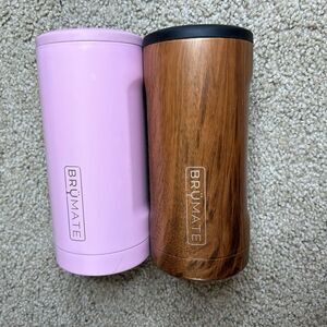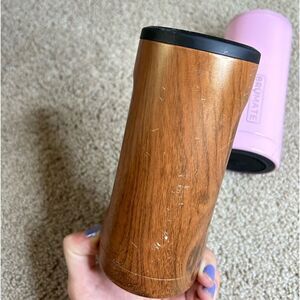 Brumate Bundle Of Two Brown Wood and Light Pink Selzter Koozie Holders