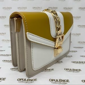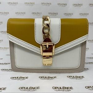 Comes with 2 shoulder straps: (1) fabric, (1) chain link strap