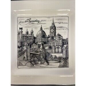 Brunelli Cities London Square 7.5 in. Plate Black White Made in Italy