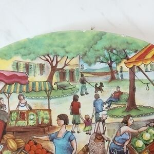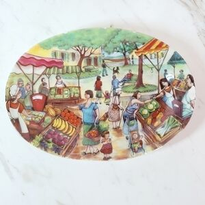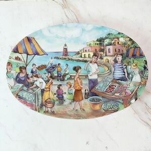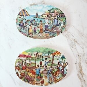 Brunelli Set of 2 Italian Market Scene Oval Plates Made in Italy