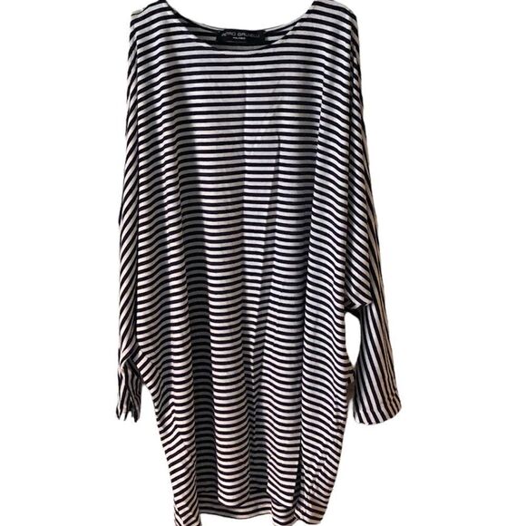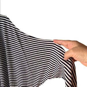 Cute black & white striped Italian tunic has cold shoulders and dolman sleeves. Adorable and hugs your baby bump. EUC from smoke free home.